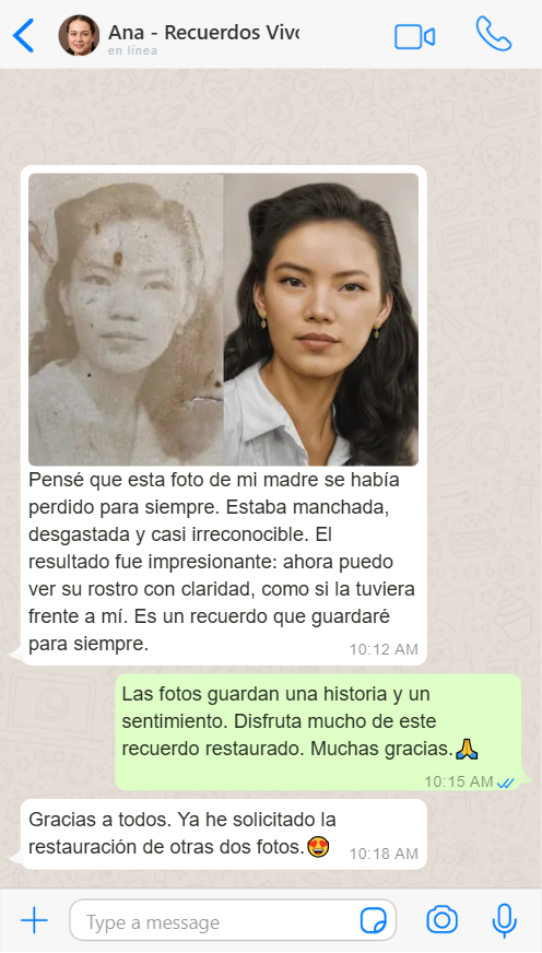 📩 Recibirás la foto restaurada en alta resolución digital (JPG o PNG) lista para imprimir o guardar en tu álbum.