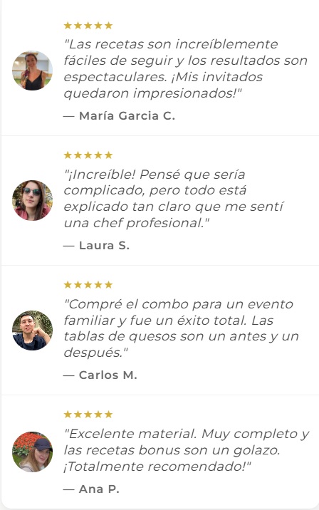 “Las recetas son increíblemente fáciles de seguir y los resultados son espectaculares. Mis invitados quedaron impresionados!”
