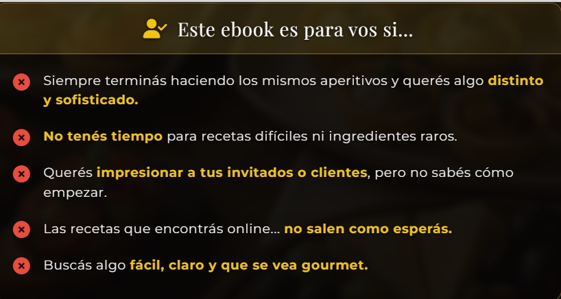 ¡Absolutamente! Las recetas son perfectas para quienes desean emprender un negocio de catering o venta de finger foods. De hecho, en el ebook de “Recetas Internacionales” y “50 Canapés Creativos”, también incluimos consejos sobre cómo vender tus platos. ¡Tus creaciones pueden convertirse en una fuente de ingresos!